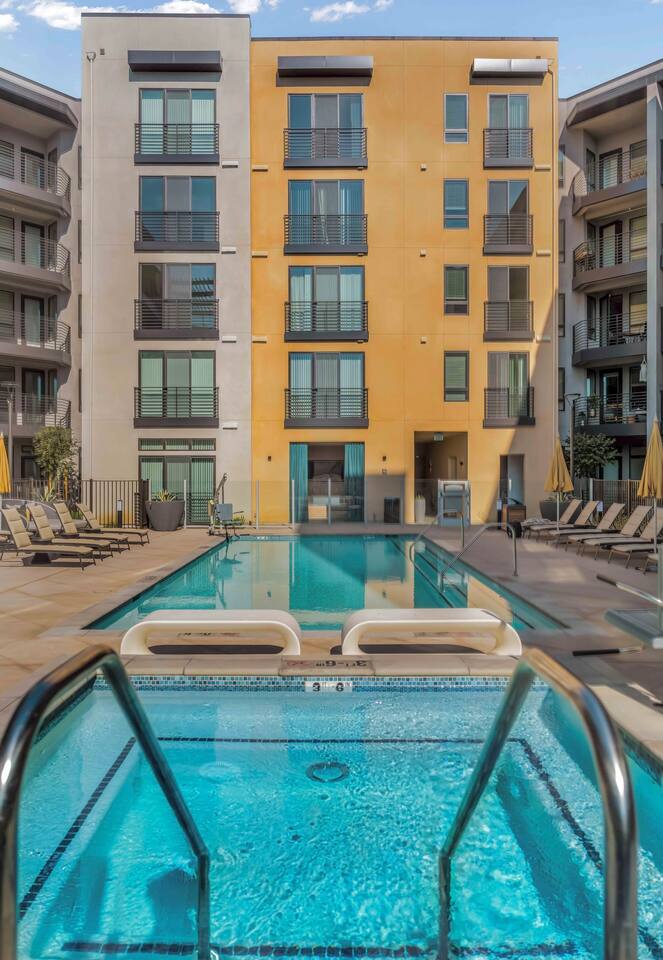 ✔️ Pool & Spa ✔️ Fitness Studio ✔️ Co-working Lounge ✔️ High Speed Wi-Fi ✔️ Very Central ✔️ Rooftop Deck ✔️ Club Room ✔️ Outdoor Dining & Grilling ✔️ 24/7 concierge ✔️ Washer and Dryer in unit ✔️EV charging available on a first-come, first-served Living Room: ✔️View from the top floor ✔️Comfy sofa ✔️Smart TV where you can enjoy streaming applications! ✔️ Dedicated workspace for remote work Bedroom: ✔️Relaxing Queen sized bed ✔️ Smart TV Kitchen: ✔️4 seater Dining Table ✔️Refrigerator ✔️Oven & stove ✔️Microwave ✔️Keurig coffee machine ✔️Toaster ✔️Kitchen utensils Bathroom: ✔️ Shower and other bathroom essentials. ✔️We also have In unit washer and dryer - feel free to use!