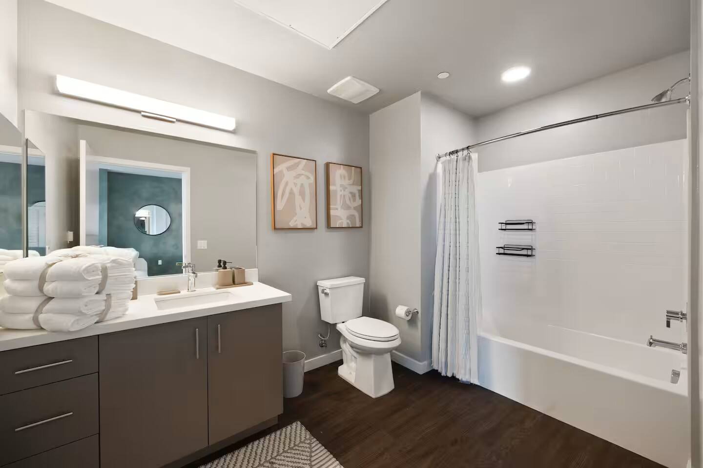 You have the whole unit exclusive for you. Pool, Gym, Spa, Hot Yoga Room, Golf, Football, Baseball, dodgeball simulator, Conference Rooms & ample WFH spaces are all shared spaces with other tenants in the building. All these are free to use.