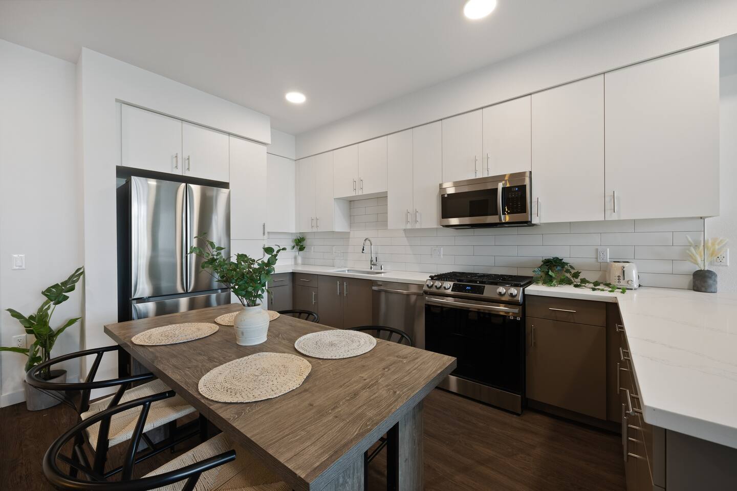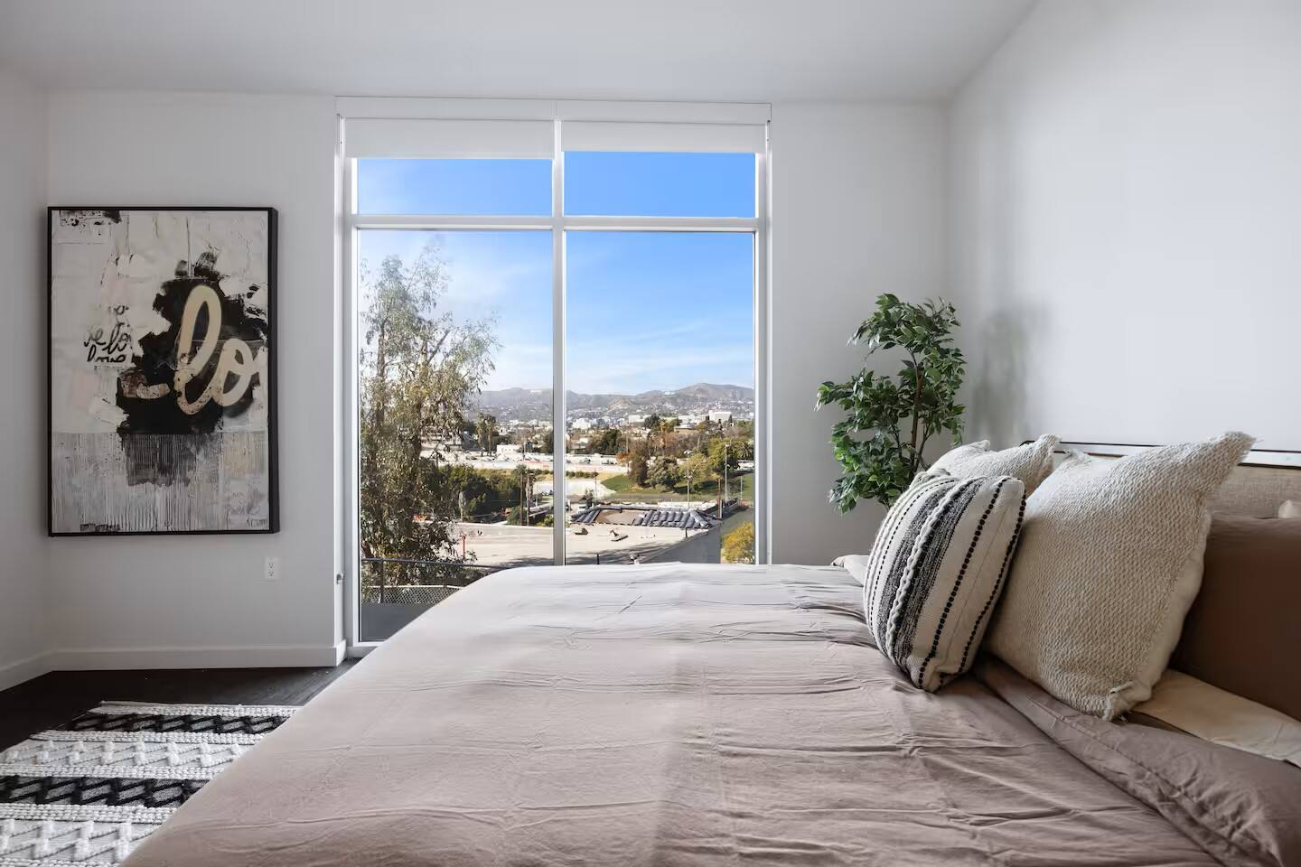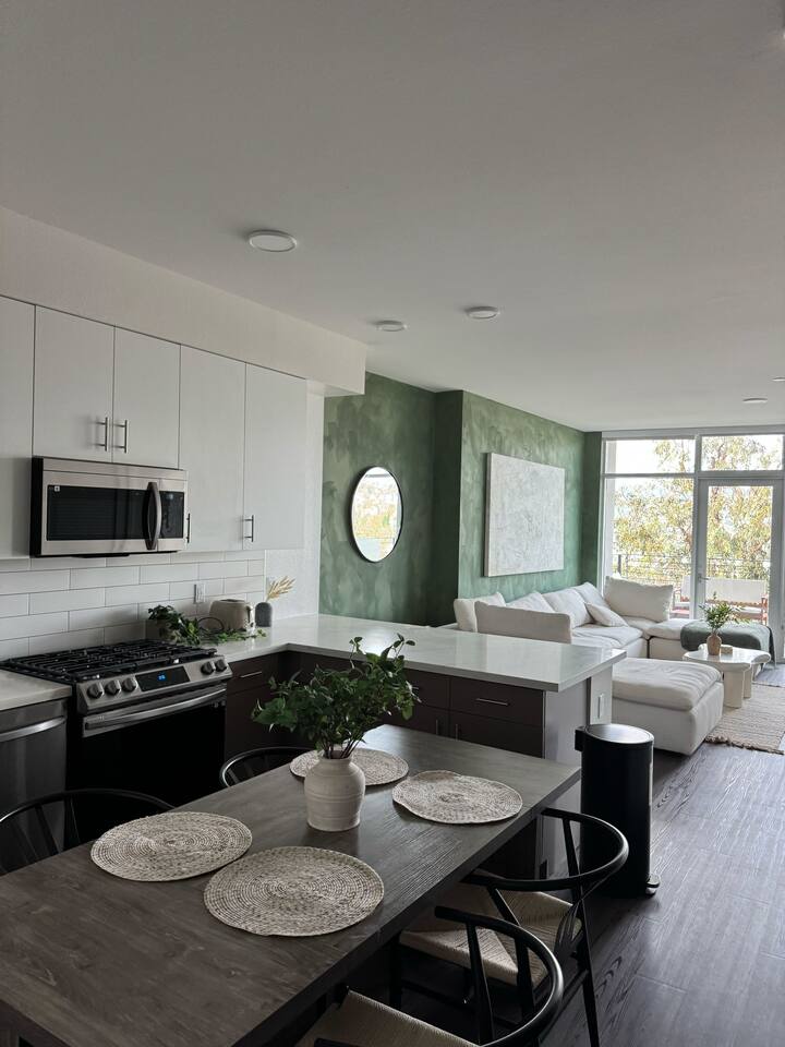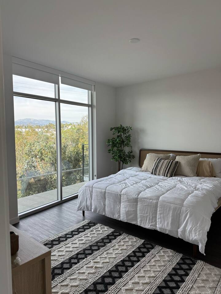 Welcome to Epitome of Luxury! Here's what you can expect in our Modern Luxury unit: Malls & Shopping Centers: -The Grove – Outdoor mall with shops, restaurants, and a movie theater. -Beverly Center – Large indoor shopping mall with luxury and contemporary brands. Attractions & Landmarks: -Los Angeles County Museum of Art (LACMA) – Largest art museum in the western U.S. -The Getty Center – Art, architecture, and gardens with city views. -Griffith Observatory – Observatory with exhibits and panoramic city views. -Hollywood Walk of Fame – Famous sidewalk honoring entertainment stars. Outdoor & Recreational Areas: -Echo Park Lake – Scenic park with paddle boating and walking paths. -Silver Lake Reservoir – Popular for jogging and relaxing by the water. Living Room: View from the top floor, comfy sofa and Smart TV where you can enjoy streaming applications! Bedroom: We have 2 bedrooms—one with a queen bed and one with a king bed—along with a designated workspace, making it ideal for remote workers. Kitchen: 4 seater Dining Table, Refrigerator, oven & stove, microwave, Keurig coffee machine, toaster and other kitchen utensils Bathroom: Shower and other bathroom essentials. We also have In unit washer and dryer - feel free to use!